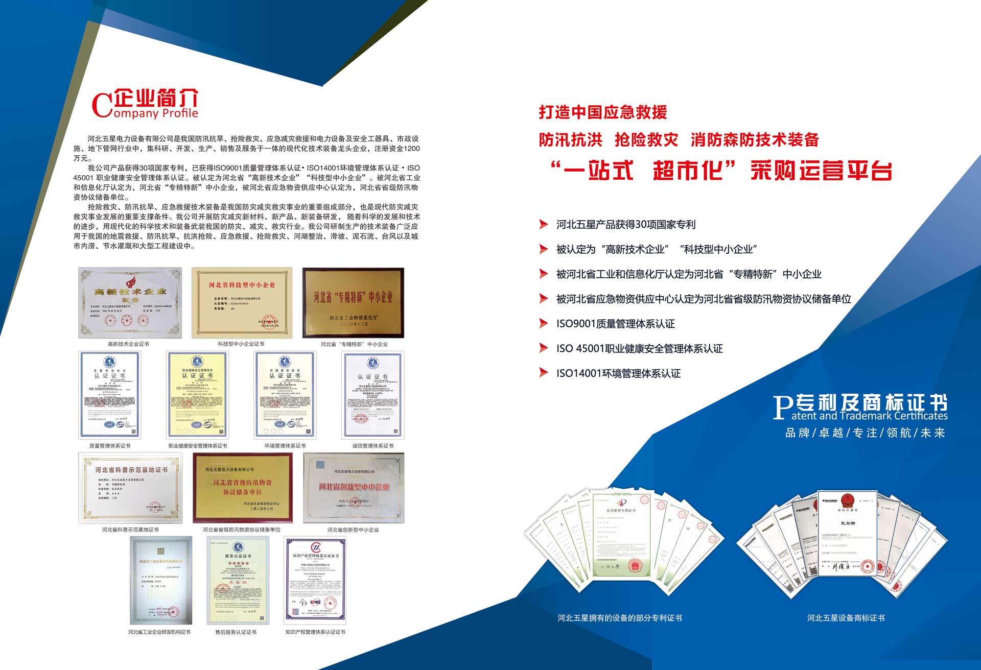 河北五星電力設(shè)備有限公司是我國防汛抗旱、搶險(xiǎn)救災(zāi)、應(yīng)急減災(zāi)救援和電力設(shè)備及安全工器具、市政設(shè)施、地下管網(wǎng)行業(yè)中,集科研、開發(fā)、生產(chǎn)、銷售及服務(wù)于一體的現(xiàn)代化技術(shù)裝備高新技術(shù)企業(yè),注冊資金1200萬元。